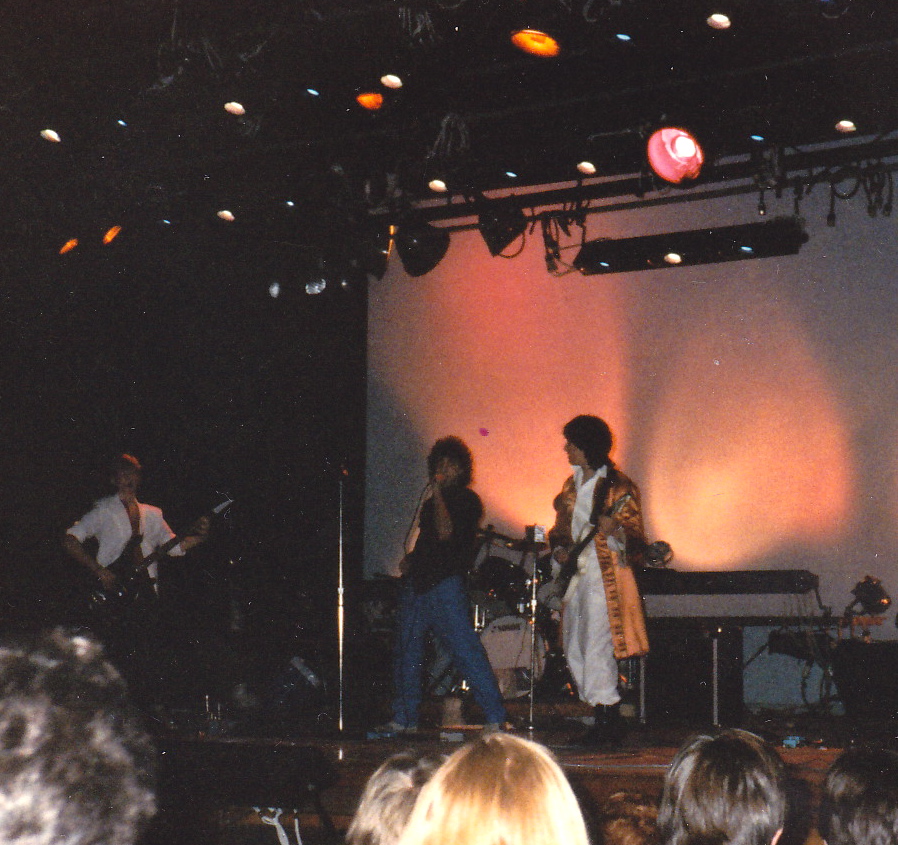 The videos are crude, but hey, it was the eighties, when it wasn’t perceived as a particularly weird or antisocial thing to perform a fifteen-minute live Dazed and Confused complete with violin bow solo, when in fact an audience of high-schoolers knew exactly why you were waving that bow around. Because in 1986 Zeppelin were six-years and a world ago gone, but, for a few minutes in that high-school auditorium we kinda sorta made it seem they weren’t.