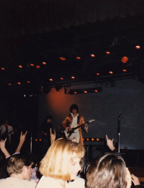 When we took the Tenafly High School Auditorium stage in January 1986, the RB Laurence Band had played exactly once in public, at the THS talent show some months earlier. Yet, somehow we managed to finagle our own showcase, our own “concert” in front of our peers. I remember that we set about doing this in the most ambitious way possible. We spent endless hours in Russ’s basement working up songs. Jason, Dave, Russ, me, and also Andy Markham (since then become the renowned Andy Action). (oh, and Franklin Parlamis on keyboards too). Zeppelin songs, which we felt were our strong suit, made up the core of the set, but we also drew from a number of artists, classic rock staples of the time: Van Halen, Billy Squier (he sounded very Zeppelin-ish to our ears back then), Rush, Deep Purple. The Who. Triumph (good God, why Triumph? you ask. There really isn’t a good answer to that one, but  to this day, even listening to my out-of-tune guitar and thinking about how hokey the lyrics are, I love hearing Russ’s falsetto harmony with Dave on this one, and I suspect that the lyrics–with their exhortation to, well, follow your heart, actually meant something important to 18 year old me.)