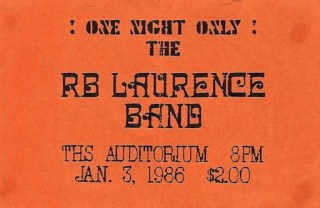 One Night Only is the name the RB Laurence Band gave to our show in the THS auditorium. How it is that we were given the run of the place is hard to fathom; Russ (the drummer and keyboard player) just seems to have been awfully good at talking the school administration into letting us have our way with their facilities.